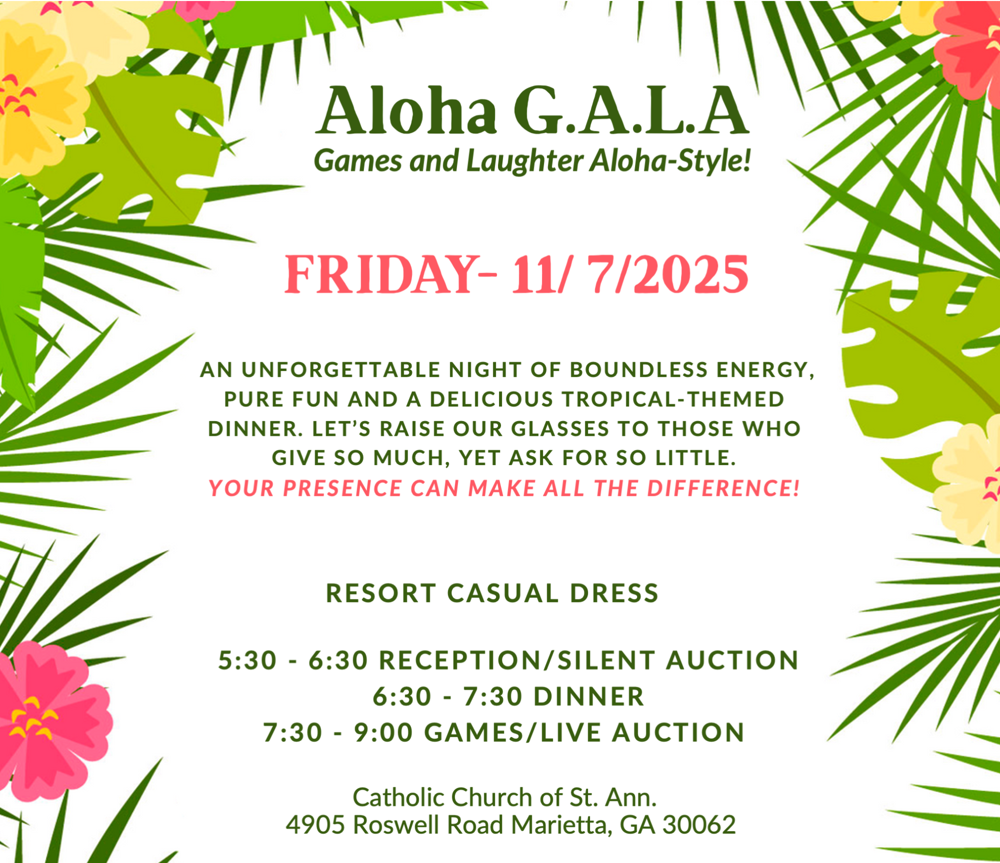 🌺 We look forward to a night of island-style fun! Attendees will dive into the excitement with a Live & Silent Auction, the playful Heads-n-Tails Lei Game, a lucky Split-the-Pot Raffle, energizing games and so much more—served with true Aloha spirit!