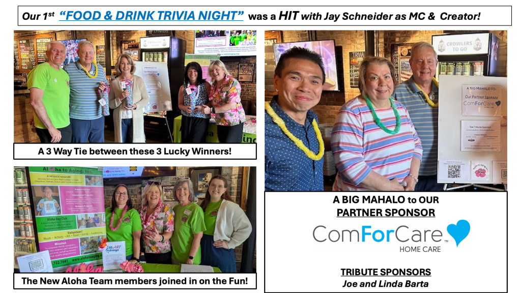 Proceeds from our 2026 “Fun”draisers will help support the unique programs Aloha to Aging, Inc. provides to the community such as:
