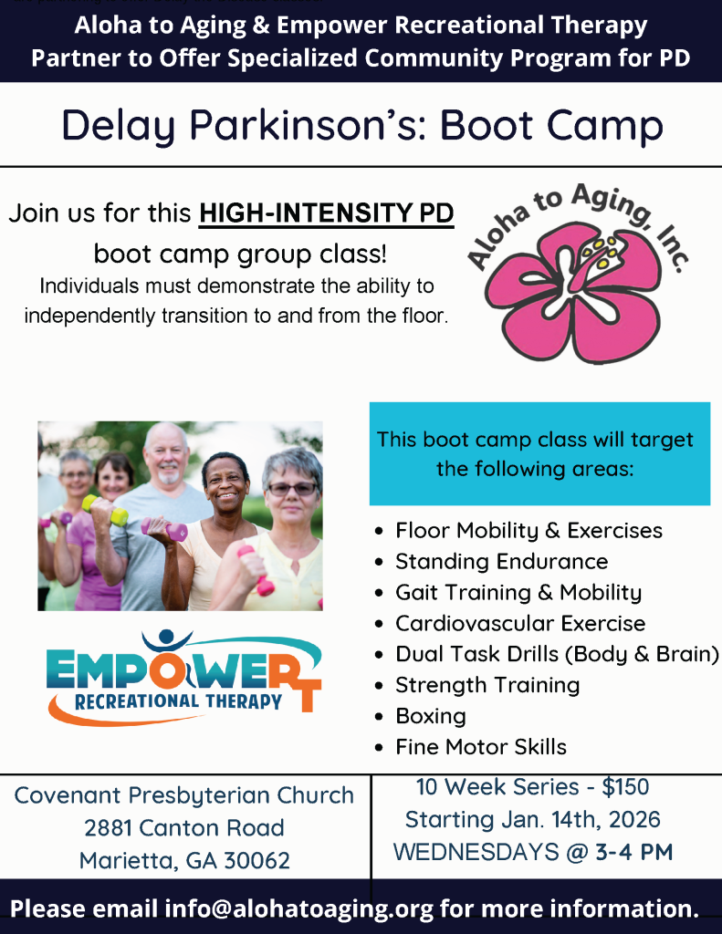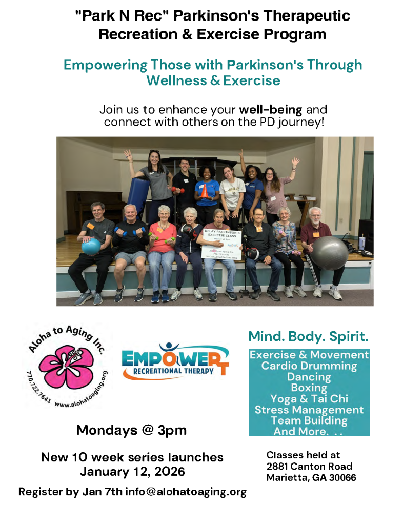 Erik Nelson, Advancement Director for the Parkinson’s Foundation, Georgia Chapter will be sharing Parkinson’s Foundation PD resources that offer practical tools to improve quality of PD life, especially the new “Hospital Safety Guide”. Our support group provides a supportive and insightful space for individuals living with Parkinson’s disease and their care partners. Led by a certified facilitator, the group fosters open discussions where attendees can share experiences, receive encouragement, and connect with others facing similar challenges. Helpful tips, resources, and quarterly educational speakers offer valuable guidance and practical tools to improve quality of life. Each month, the group welcomes new members, many of whom are newly diagnosed, creating a welcoming environment for both ongoing support and often the first steps of the Parkinson’s journey.