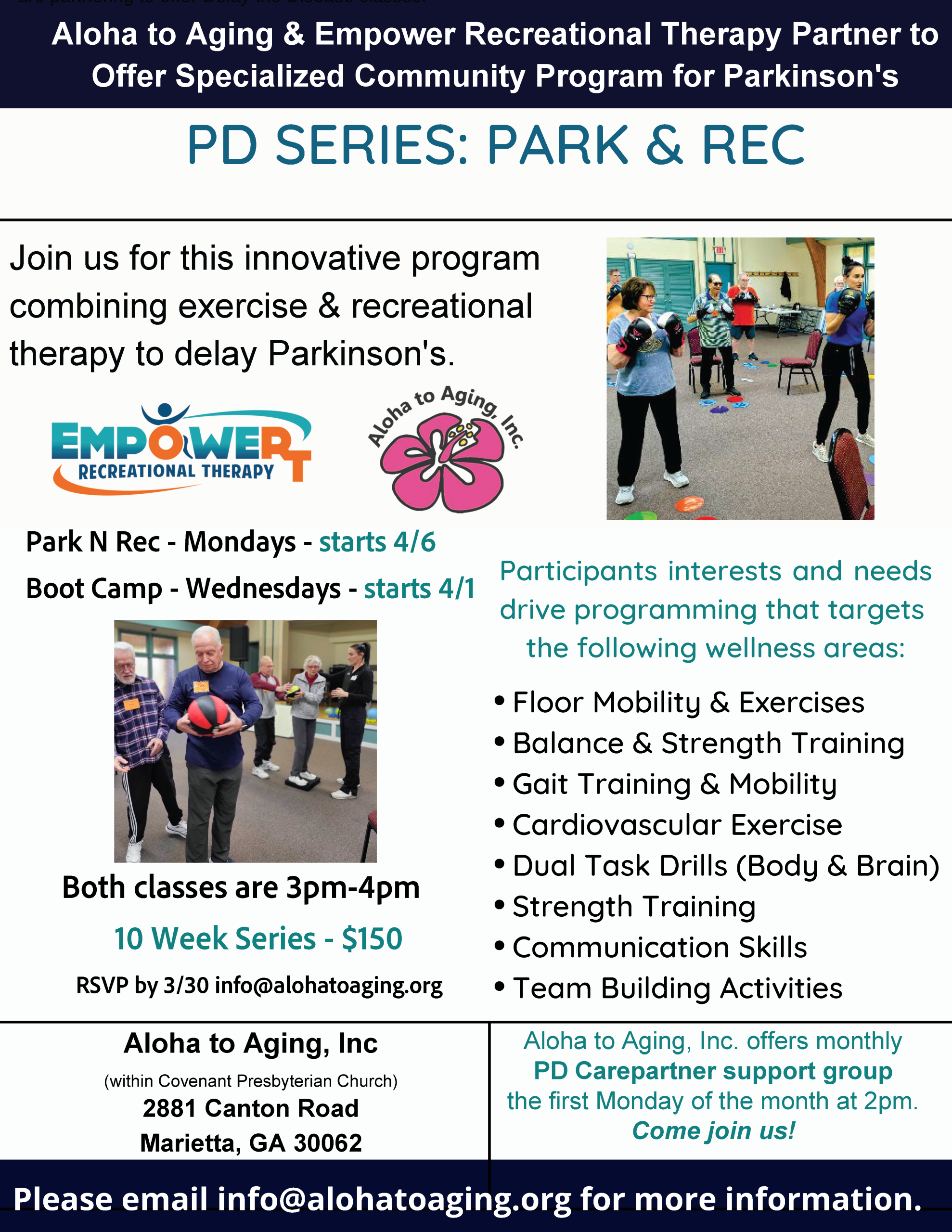 For additional information call 770-722-7641 or email info@alohatoaging.org
